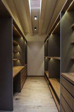 La combinación de acabados en este espacio de descanso ordena y da su lugar a elementos en materiales orgánicos Creando un espacio acogedor y relajante para una familia joven.